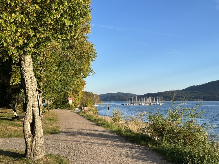 Flatgebouw "EX-Kurhotel Schluchsee", omgeven door bomen en weiden. Boven Schluchsee, 500 m van het centrum, 100 m van de bosrand, 500 m van het meer. Voor medegebruik: groot tuin met gazon en bomen, overdekt zwembad verwarmd (14 x 5 m, 130 - 140 cm diepte, openingstijden zwembad: 07:00-13:00 en 15:00-22:00). Douche/WC bij het zwembad, terras, tuinmeubelen. In het complex: salon, internetaansluiting, Internet (WiFi), sauna (extra). Fitnessruimte (extra). Biljart, speelkamer, tafelvoetbal, lift, berging voor ski's, centrale verwarming, wasmachine (extra), droger (voor medegebruik, extra). Parkeerplaats bij het huis, gemeenschappelijke garage bij het huis. Winkel, levensmiddelenwinkel, supermarkt 600 m, winkelcentrum 10 km, restaurant, bakkerij, café 600 m, fietsverhuur 500 m, centrum te voet bereikbaar in 10 minuten, bushalte 50 m, treinstation 800 m, zandstrand 500 m, 300 m, openluchtzwembad 800 m, meer (zwemmen) 500 m, meer Schluchsee 500 m. Zeilschool 800 m, tennis, tennishal 200 m, wandelroutes 1 m vanaf het huis, fietspad 50 m, skilift 2 km, rodelbaan 50 m, langlaufloipe 200 m, kinderspeelplaats 50 m, Vismogelijkheden 3 km. Attracties in de buurt: Staatsbrauerei Rothaus 10 km, Schwarzwaldhaus der Sinne 10 km, Dom St. Blasien 15 km, Badeparadies Titisee-Neustadt 25 km, Freiburg 55 km, Spasspark Hochschwarzwald 500 m. Bekende skigebieden kunnen gemakkelijk worden bereikt: Feldberg / Hochschwarzwald 20 km. Bekende meren kunnen gemakkelijk worden bereikt: Schluchsee 500 m, Titisee 25 km. Wandelgebied Schluchseer Jägersteig 1 km, Rothauser Land 8 km, Schluchseegebiet / Feldberggebiet.