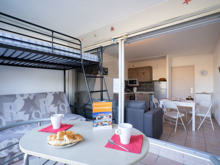 Residentie "Escale Port", van 3 verdiepingen. In de wijk la Plage Nord, 150 m van zee, 150 m van het strand. Voor medegebruik: openluchtzwembad (100 - 250 cm diepte, seizoensgebonden beschikbaarheid: 15.Jun. - 15.Sep.). Kinderzwembad, parkeerplaats (beperkt aantal). Winkel, levensmiddelenwinkel 150 m, supermarkt 350 m, winkelcentrum, restaurant 150 m, bushalte 1.7 km, treinstation 4 km, zandstrand "Plage Nord" 150 m, thermaalbad "Thalazur les Bains de Camargue" 4 km. Jachthaven 50 m, jachthaven 50 m, tennis 1 km, midgetgolf 400 m, manege 1 km. Attracties in de buurt: Seaquarium 7 km, Casino Flamingo 8 km, Aigues-Mortes 10 km, La Grande-Motte 13 km, Montpellier 32 km, Nîmes 52 km. Wandelgebied Réserve Naturelle de Camargue.