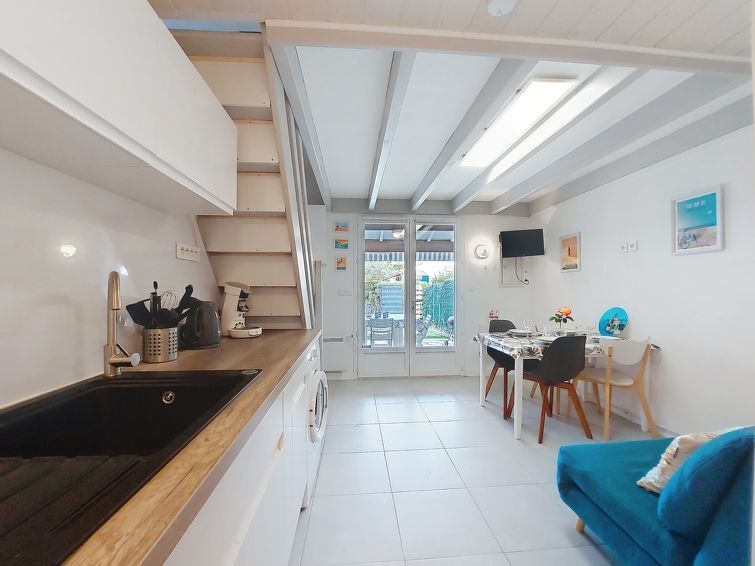 Huis in een rij 2-kamers 30 m2 op 2 verdiepingen. Woon-/eetkamer met TV (Flatscreen TV). Uitgang naar het terras. Kookhoek (oven, afwasmachine, 3 keramische glas kookplaten, broodrooster, waterkoker, diepvriezer, elektrische koffiemachine). Douche/WC. Elektrische verwarming, air-conditioning. Bovenverdieping: galerij met afgeschuinde daken met 2 bedden (90 cm, lengte 190 cm), 1 2-pers bed (1 x 140 cm, lengte 190 cm), TV (Flatscreen TV). Terras 6 m2, zithoek in de tuin 20 m2. Terrasmeubelen, elektrische barbecue. Ter beschikking: wasmachine. Internet (WiFi, extra). Parkeerplaats. 1 klein huisdier/hond toegestaan. Rookmelders. Aanbod door een particulier volgens art. 155, IV van CGI.