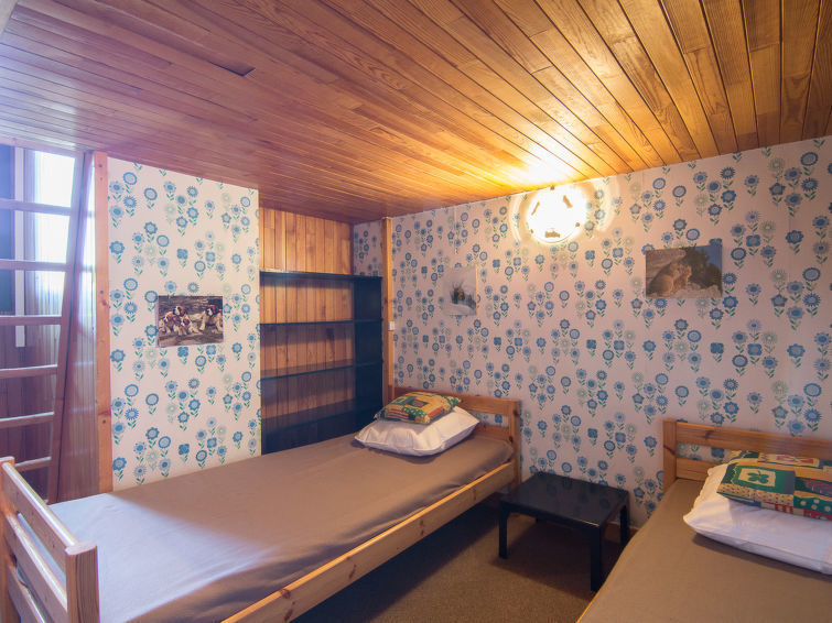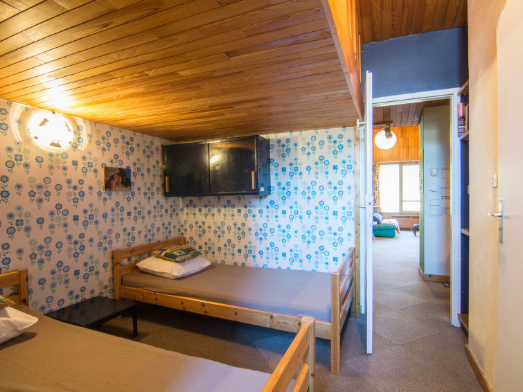 Appartement 3-kamers 55 m2 op 2 verdiepingen op de 6e verdieping. Hal. Bovenverdieping: (wenteltrap) woon-/eetkamer met 1 uitschuifbaar bed (2 pers. 2 x 80 cm, lengte 190 cm). 1 kamer met 1 2-pers bed (160 cm, lengte 190 cm). 1 kamer met 2 bedden (90 cm, lengte 190 cm), douche. Kookhoek (4-pits kookplaat, oven, afwasmachine, magnetron). Badkamer, aparte WC. Op het zuiden gelegen. Mooi uitzicht op de bergen. Ter beschikking: Internet (Internet (WiFi), extra). Rookmelders.