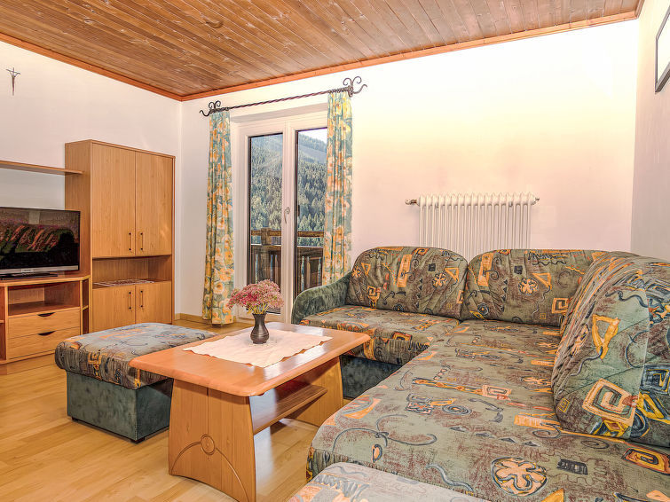"Dachstein", appartement 3-kamers 60 m2 op de 2e verdieping. Rustiek en gezellig ingericht: hal. Woon-/slaapkamer 16 m2 met 1 2-pers divanbed, douche/WC en Kabel-TV. Uitgang naar het balkon. 1 2-pers. kamer 12 m2 met 1 2-pers bed (180 cm, lengte 200 cm), douche/WC. 1 2-pers. kamer 16 m2 met 2 bedden (90 cm, lengte 200 cm), douche/WC en elektrische verwarming. Kleine keuken 8 m2 (2-pits kookplaat, oven, afwasmachine, elektrische koffiemachine). Groot balkon. Balkonmeubilair. Zeer mooi uitzicht op de bergen en het landschap. Parkeerplaats. Niet rokers woning, rookvrij huis. 1 huisdier/hond toegestaan. 50407-000144-2020