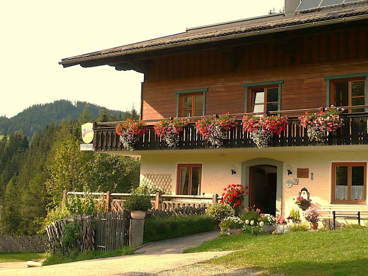 Filzmoos: Gezellig flatgebouw "Hallmooshof", vrijstaand, omgeven door weiden en velden. 3 appartementen in de woning. Boven Filzmoos, aan de rand van de plaats, 900 m van het centrum, geïsoleerde, rustige, zonnige ligging tegen een helling, direct aan de bosrand, 1.2 km van het skigebied, te midden van groen. Voor medegebruik: terrein, tuin (niet omheind). Tafeltennis, terras, tuinmeubelen. In het huis: salon, centrale verwarming, wasmachine (extra). In de winter sneeuwkettingen aanbevolen. Parkeerplaats bij het huis. Winkel 1.2 km, levensmiddelenwinkel 1.2 km, supermarkt 1.2 km, restaurant 1.2 km, bar 1.2 km, café 1.2 km, bushalte "Ortsmitte Filzmoos (521)" 1.1 km, treinstation "Eben" 12 km, openluchtzwembad 15 km, overdekt zwembad 15 km. Bergtrein 1.2 km, skilift 1.2 km, stoeltjeslift 1.2 km, skischool 1.2 km, langlaufloipe 1.2 km, kinderspeelplaats 1.2 km. Bekende meren kunnen gemakkelijk worden bereikt: Badesee Eben 15 km, Badesee Ramsau 25 km. Wandelgebied Moorlehrpfad 1.5 km, Hallmoos Rundwanderweg, direkt beim Haus, Start Wanderung zu den Hofalmen 1.2 km.