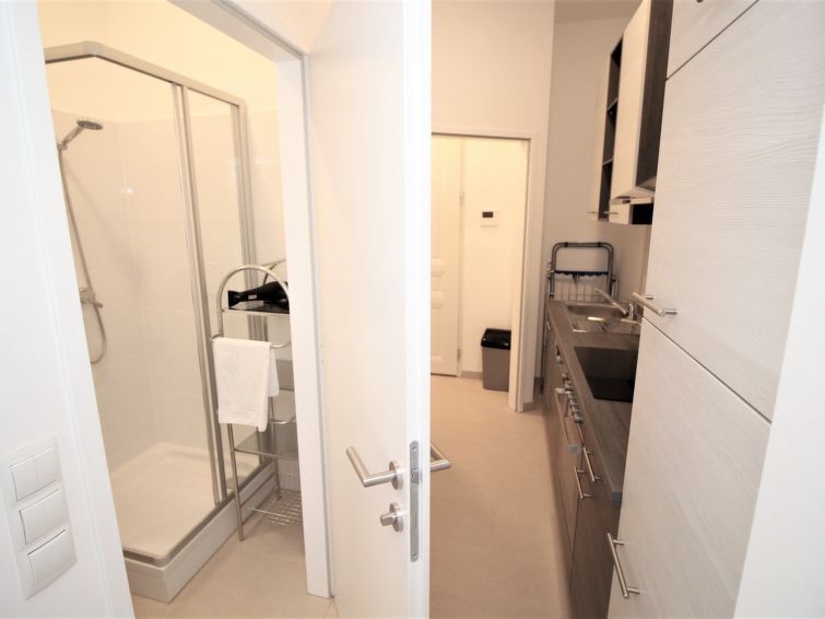 "Studio Meidling", studio 1-kamer 30 m2 op de 2e verdieping. Volledig gerenoveerd in 2022, zeer modern ingericht: woon-/slaapkamer met 1 2-pers divanbed, 2 uitschuifbare bedden, eettafel, Kabel-TV, internationale TV-zenders en Flatscreen TV. Open keuken in de hal (oven, afwasmachine, 4 keramische glas kookplaten, broodrooster, waterkoker, diepvriezer, elektrische koffiemachine) met aparte WC en douche. Houten vloeren. Ter beschikking: haardroger. Internet (WiFi, gratis). Niet rokers woning. Geen lift.