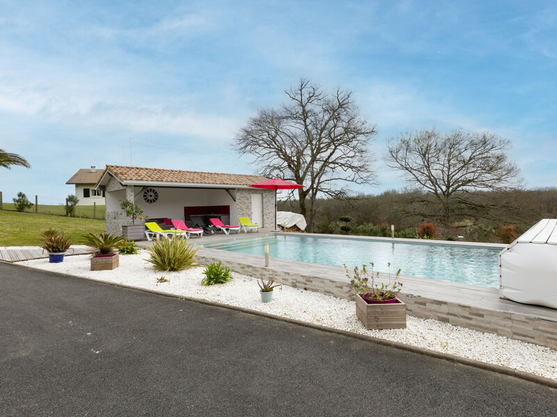 Mooi huis "Lesgau". 5.5 km van het centrum van Saint-Martin-de-Seignanx, 11 km van het centrum van Ondres / Tarnos, 13 km van het centrum van Bayonne, op een heuvel, 15 km van zee, 15 km van het strand, 1.5 km van de rivier. Voor medegebruik: terrein 2.700 m2, verzorgde tuin, openluchtzwembad hoekig (9 x 4 m, 135 cm diepte, seizoensgebonden beschikbaarheid: 01.Jun. - 30.Sep.) met trap, oprolbaar afdekscherm en zout-elektrolyse. Poolhouse, tafeltennis, terras, onderhoud zwembad door de eigenaar/tuinman, parkeerplaats (voor 2 auto's) bij het huis op het terrein. Winkel 5.5 km, supermarkt 5.5 km, bushalte "Quartier Neuf" 4 km, zandstrand "Ondres - Tarnos" 15 km. Attracties in de buurt: Réserve naturelle des Barthes 500 m, Capbreton/Hossegor 20 km, Biarritz 20 km, Dax/Hendaye 45 km, Espagne 45 km, San Sebastian 60 km. Bekende skigebieden kunnen gemakkelijk worden bereikt: La Pierre Saint Martin 110 km. Wandelgebied Sentiers pédestres depuis la maison, itinéraires cyclables depuis la maison, La Rhune 68 km. De eigenaar accepteert geen jeugdgroepen. De eigenaar woont op hetzelfde terrein. Eigenaar woont in apart huisgedeelte.