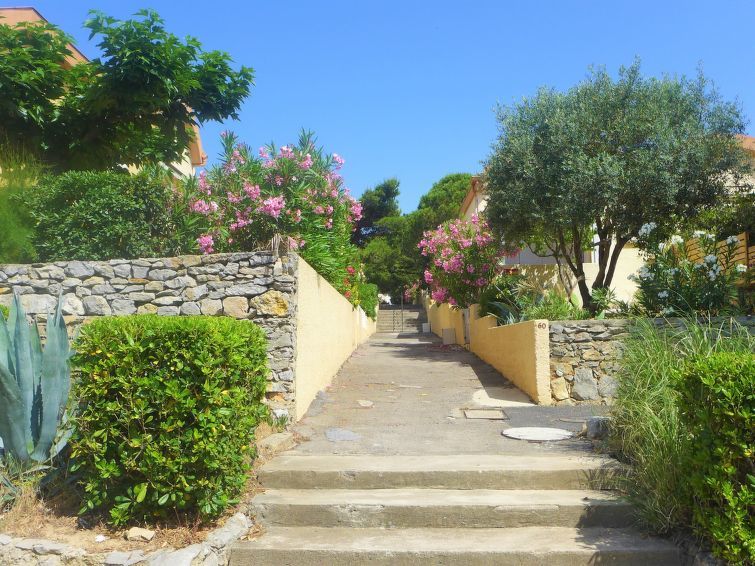 Residentie "Les Romarines". Op een heuvel, 2.5 km van zee. Parkeerplaats. Winkel, levensmiddelenwinkel, supermarkt, restaurant, bar 200 m, bushalte 300 m, zandstrand "du Grazel", strandbad 200 m. Tennis, tennishal 400 m, manege 5 km. Attracties in de buurt: Réserve Africaine de Sigean 29 km. De sleuteloverdracht vindt plaats bij het agentschap Interhome in Narbonne Plage, 10 km.