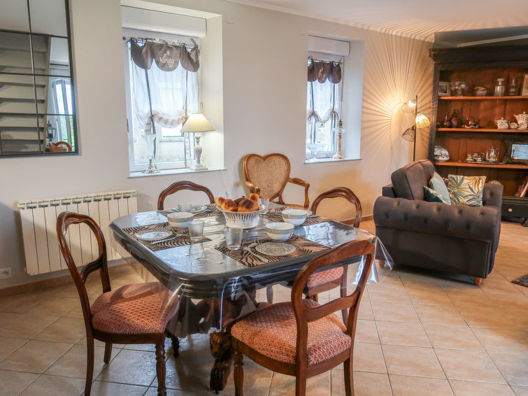 Huis 4-kamers 110 m2 op 2 verdiepingen. Mooi en stijlvol ingericht: woon-/eetkamer met open haard en TV (Flatscreen TV). Uitgang naar de tuin. Open keuken (4-pits kookplaat, oven, afwasmachine, broodrooster, waterkoker, magnetron, elektrische koffiemachine) met elektrische verwarming. Douche, aparte WC. Bovenverdieping: 3 kamers met afgeschuinde daken, elke kamer heeft 1 bed (90 cm, lengte 190 cm), 1 2-pers bed (1 x 180 cm, lengte 200 cm) (1 x 140 cm, lengte 190 cm). Douche/WC. Elektrische verwarming. Terras 10 m2. Terrasmeubelen, barbecue, ligstoelen (4). Ter beschikking: wasmachine, droger, strijkijzer, kinderstoel, kinderbed tot 3 jaar, haardroger, haardhout (gratis). Internet (WiFi, gratis). Parkeerplaats (omheind, 2 Auto's). Maximaal 1 huisdier/hond toegestaan. Rookmelders.