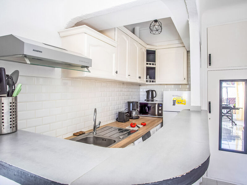 Appartement 1-kamer 28 m2 op de 1e verdieping, op het zuiden gelegen. Comfortabel en modern ingericht: woon-/eetkamer met 1 2-pers divanbed (1 x 140 cm, lengte 190 cm), 1 2-pers bed (1 x 140 cm, lengte 190 cm), TV (Flatscreen TV). Uitgang naar het terras. Open keuken (3 inductiekookplaten, broodrooster, waterkoker, magnetron, elektrische koffiemachine). Uitgang naar het terras. Douche/WC. Elektrische verwarming, air-conditioning. 2 terrassen 9 m2, op het zuiden gelegen. Terrasmeubelen. Uitzicht op de tuin. Ter beschikking: wasmachine, strijkijzer, haardroger. Internet (Internet (WiFi), gratis). Rookvrij huis. Rookmelders, geen lift. Aanbod door een particulier volgens art. 155, IV van CGI. 06161001065YZ