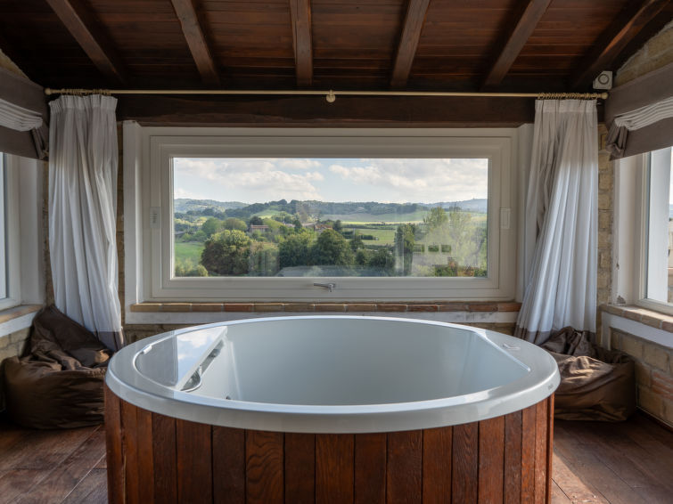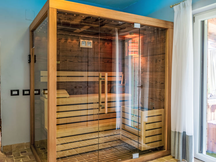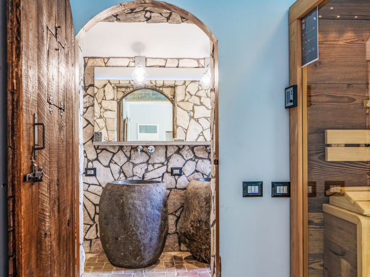 5-kamers cottage 300 m2 op 2 verdiepingen. Modern en luxueus ingericht: groot woon-/eetkamer. Uitgang naar de tuin, naar de veranda. 1 kamer met 1 2-pers divanbed en TV (Flatscreen TV). 1 2-pers. kamer. Keuken (4-pits kookplaat, afwasmachine, magnetron). Uitgang naar de tuin, pergola. Douche/bidet/WC, dubbele wastafels. Bovenverdieping: (buitentrap) woonkamer met hot tub. 1 2-pers. kamer. Woon-/eetkamer met open haard. Douche/bidet/WC, Hammam-douche. Elektrische verwarming, air-conditioning. Zeer mooi uitzicht op het dal. Ter beschikking: wasmachine, klamboe, haardroger. Internet (WiFi). IT058091B4I8B3MGYZ