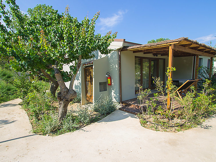 "Deluxe", huis 3-kamers 40 m2, op de begane grond. Modern en stijlvol ingericht: woon-/eetkamer met 1 2-pers divanbed, kookhoek en Digitale TV. Uitgang naar het terras. 1 2-pers. kamer met Digitale TV. 1 kleine kamer met 2 bedden. Kookhoek (3 inductiekookplaten). Douche/bidet/WC. Air-conditioning. Zithoek in de tuin. Zitgelegenheid. Ter beschikking: Internet (Internet (WiFi), gratis). Accommodatie voor gehandicapten moet vooraf worden aangevraagd.