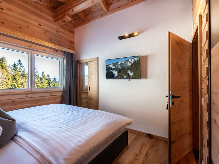 "Ferienwohnung Alpenauszeit", appartement 3-kamers 135 m2. Ruim en licht, smaakvol en gezellig ingericht: hal. 1 2-pers. kamer met douche/WC, Sat-TV, internationale TV-zenders en Flatscreen TV. Groot woonkeuken (oven, afwasmachine, 4 keramische glas kookplaten, broodrooster, waterkoker, magnetron, diepvriezer, elektrische koffiemachine) met eethoek, Sat-TV, internationale TV-zenders en Flatscreen TV. Aparte WC. Bovenverdieping: 1 2-pers. kamer met douche/WC, Sat-TV, internationale TV-zenders en Flatscreen TV. Houten vloeren, natuurstenen vloeren. Groot balkon. Balkonmeubilair. Zeer mooi panoramazicht op de bergen en het landschap. Ter beschikking: strijkijzer, kinderstoel, kinderbed tot 2 jaar, haardroger. Internet (Internet (WiFi), gratis). Rookvrij huis. Rookmelders, brandblusser. 50417-000481-2022