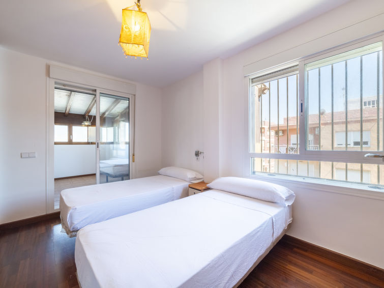 "Ático Playa Zapillo", appartement 4-kamers 60 m2 op de 4e verdieping. Eenvoudig en doelmatig ingericht: woon-/eetkamer met eettafel, Digitale TV, Flatscreen TV, air-conditioning en heteluchtverwarming. 1 kamer met 2 bedden (90 cm, lengte 190 cm), ventilator. 1 kamer met schuifdeur met 1 2-pers bed (135 cm, lengte 190 cm), ventilator. Woon-/slaapkamer met schuifdeur met 1 divanbed (130 cm, lengte 190 cm), eettafel en ventilator. Open keuken (oven, 4 keramische glas kookplaten, broodrooster, diepvriezer, elektrische koffiemachine) met bar. Bad/bidet/WC. Ter beschikking: wasmachine, strijkijzer, kinderstoel, kinderbed tot 2 jaar, haardroger. Internet (WiFi, gratis). Niet rokers woning. VFT/AL/09171 // Reg. Nr.: ESFCTU0000040130008004080000000000000000VFT/AL/091711