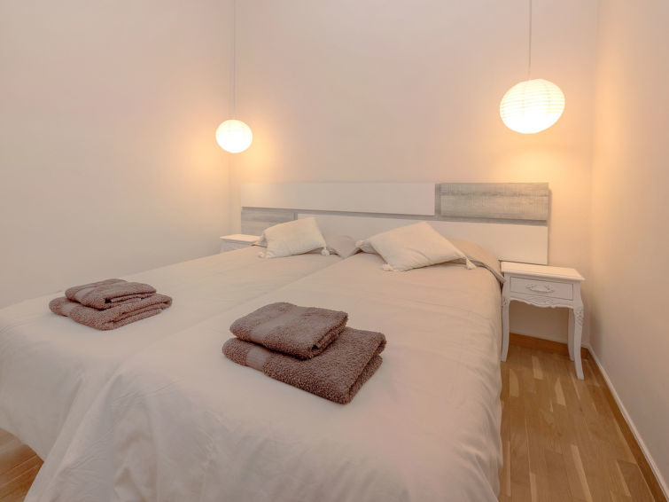 Appartement 3-kamers 65 m2 op de 3e verdieping. Eenvoudig en doelmatig ingericht: eetkamer met air-conditioning en heteluchtverwarming. Uitgang naar het balkon. Salon met Digitale TV en Flatscreen TV. Uitgang naar het balkon. 1 kamer met 2 bedden. 1 kleine kamer met 1 bed (80 cm, lengte 190 cm). Keuken (4-pits kookplaat, oven, magnetron, diepvriezer, elektrische koffiemachine). Bad/WC. Klein balkon. Ter beschikking: wasmachine, haardroger. Geschikt voor families. HUTB007252 // Reg. Nr.: ESFCTU00000806700011406100000000000000000HUTB-0072522