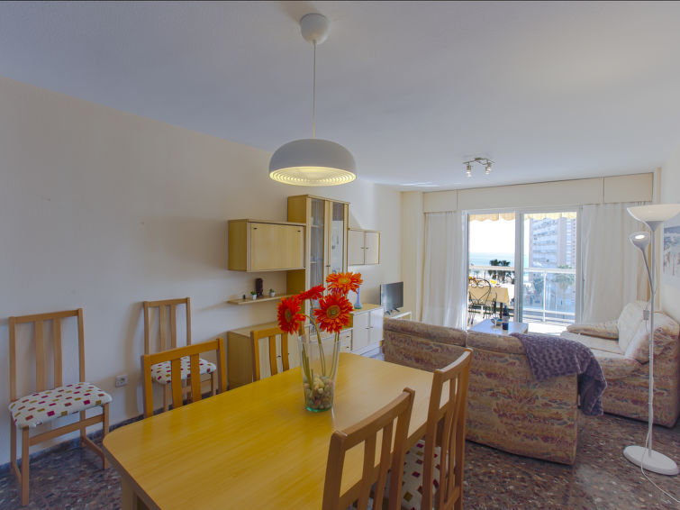 Appartement 4-kamers 100 m2 op de 4e verdieping. Ruim en licht, comfortabel ingericht: woon-/eetkamer met eettafel, Digitale TV en Flatscreen TV. Uitgang naar het terras. 1 kamer met 1 2-pers bed (135 cm, lengte 190 cm), bad/bidet/WC en ventilator. Uitgang naar het terras. 1 kamer met 2 bedden (90 cm, lengte 190 cm). 1 kamer met 1 2-pers bed (135 cm, lengte 190 cm). Keuken (oven, 4 keramische glas kookplaten, broodrooster, waterkoker, magnetron, diepvriezer, elektrische koffiemachine). Uitgang naar het balkon. Douche/bidet/WC. Elektrische verwarming. Verwarming niet in alle ruimtes. Klein balkon, groot terras. Terrasmeubelen. Uitzicht op zee, het zwembad en de plaats. Ter beschikking: wasmachine, strijkijzer, kinderstoel, kinderbed tot 2 jaar, haardroger. Parkeerplaats bij het huis. Geschikt voor families. Niet rokers woning. VT-49962-V // Reg. Nr.: ESFCTU000046037000424415000000000000000000VT-49962-V8
